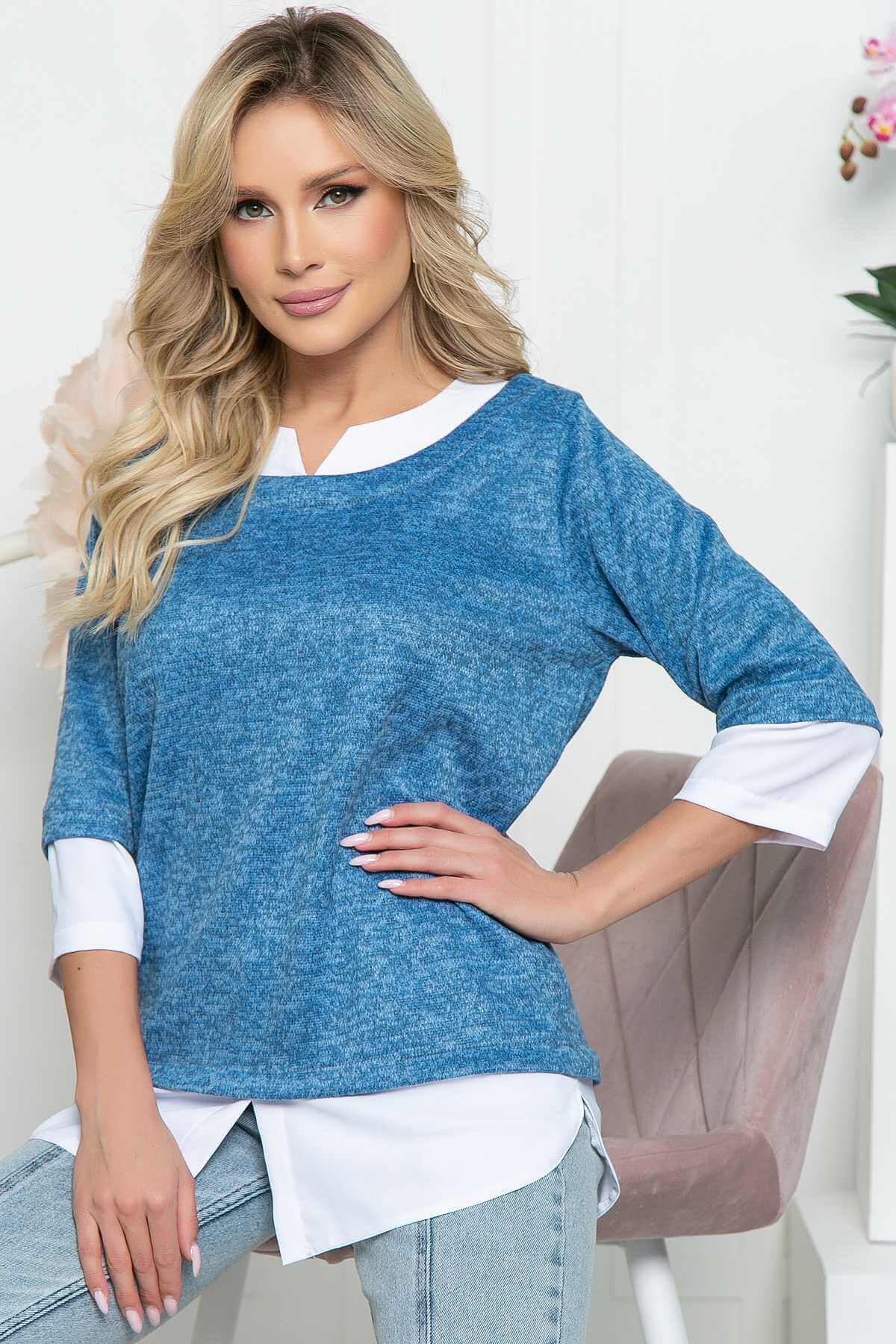 Джемпер из мягкого трикотажа украсит ваш образ и сделает его максимально комфортным. Сочетание двух видов ткани создаёт эффект многослойного образа. Джемпер подойдёт для создания повседневного или офисного образа.