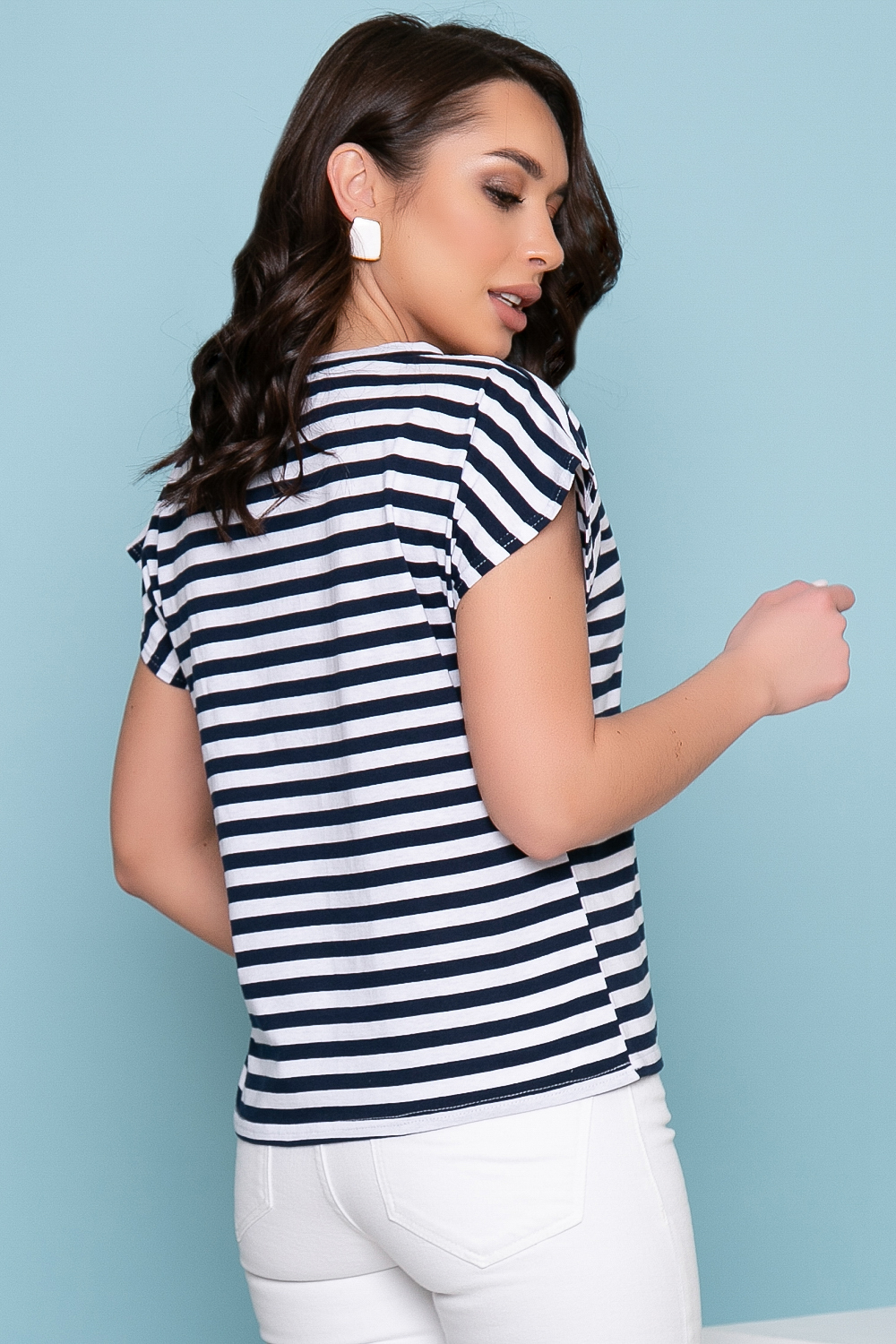 Футболка из хлопка в морском стиле - прекрасный вариант на каждый день! Сочетать можно с джинсами, шортами, юбкой и даже брюками. Рукав цельнокроенный, короткий. Округлый вырез горловины. Крой - свободный.