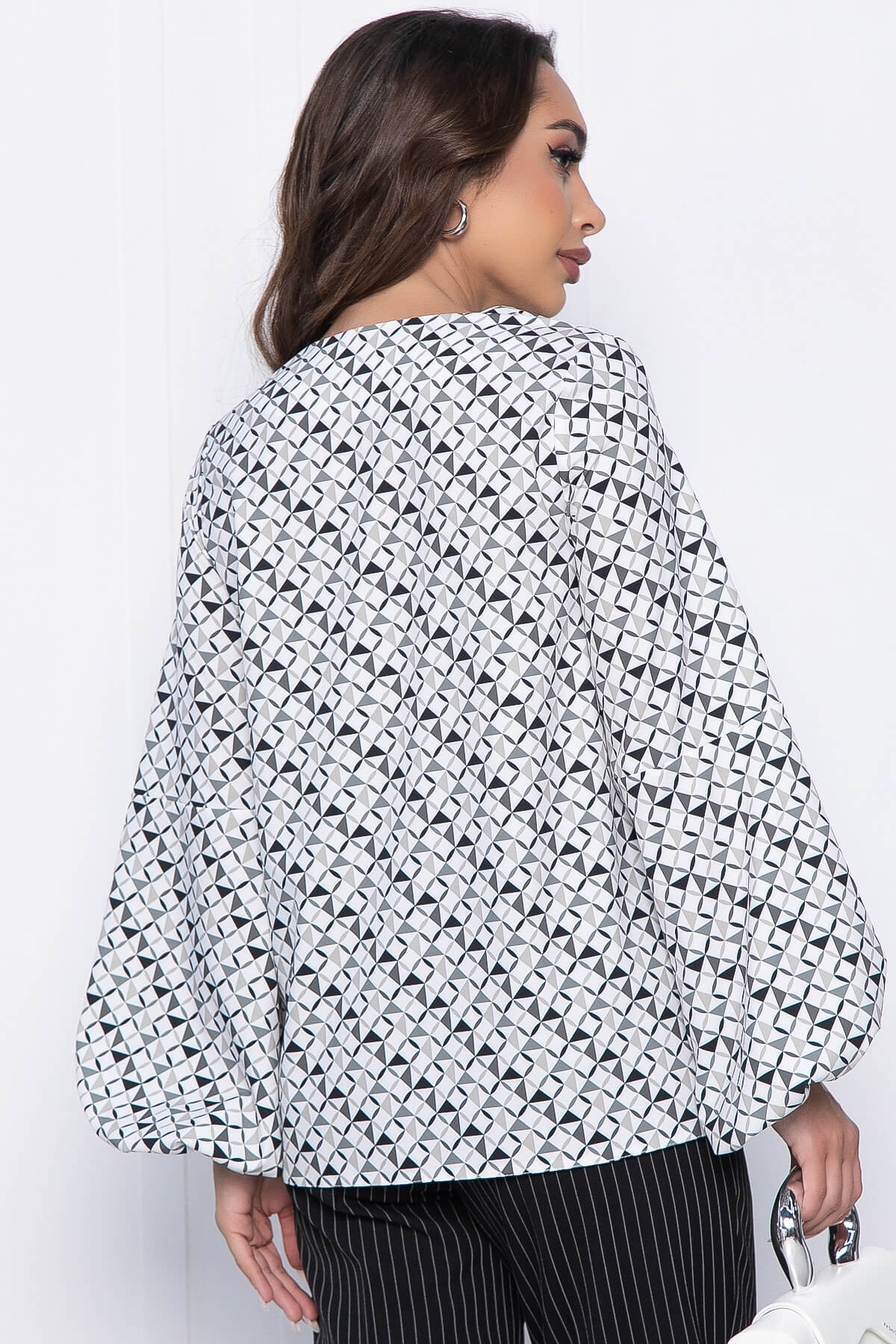 Блузка с геометрическим принтом - прекрасный выбор для стильных офисных образов! Отлично сочетается с юбками и брюками. Свободный крой позволяет с лёгкостью скрыть недостатки фигуры. Низ рукавов на резинке.