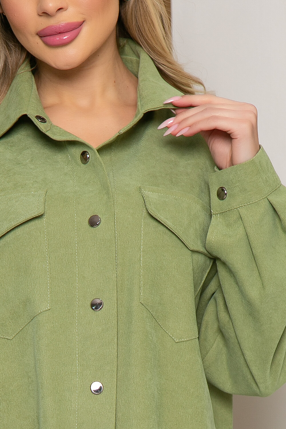 Рубашка из вельвета в стиле оверсайз - абсолютно незаменимая вещь. С её помощь можно создавать большое количество образов и чувствовать себя комфортно. Рубашка застёгивается на кнопки, рукав втачной, длинный, на мажете. Манжет также застёгивается на кнопку. По переду есть накладные карманы с клапаном. Сочетайте её с джинсами или брюками, вносите яркие акценты в повседневные образы!