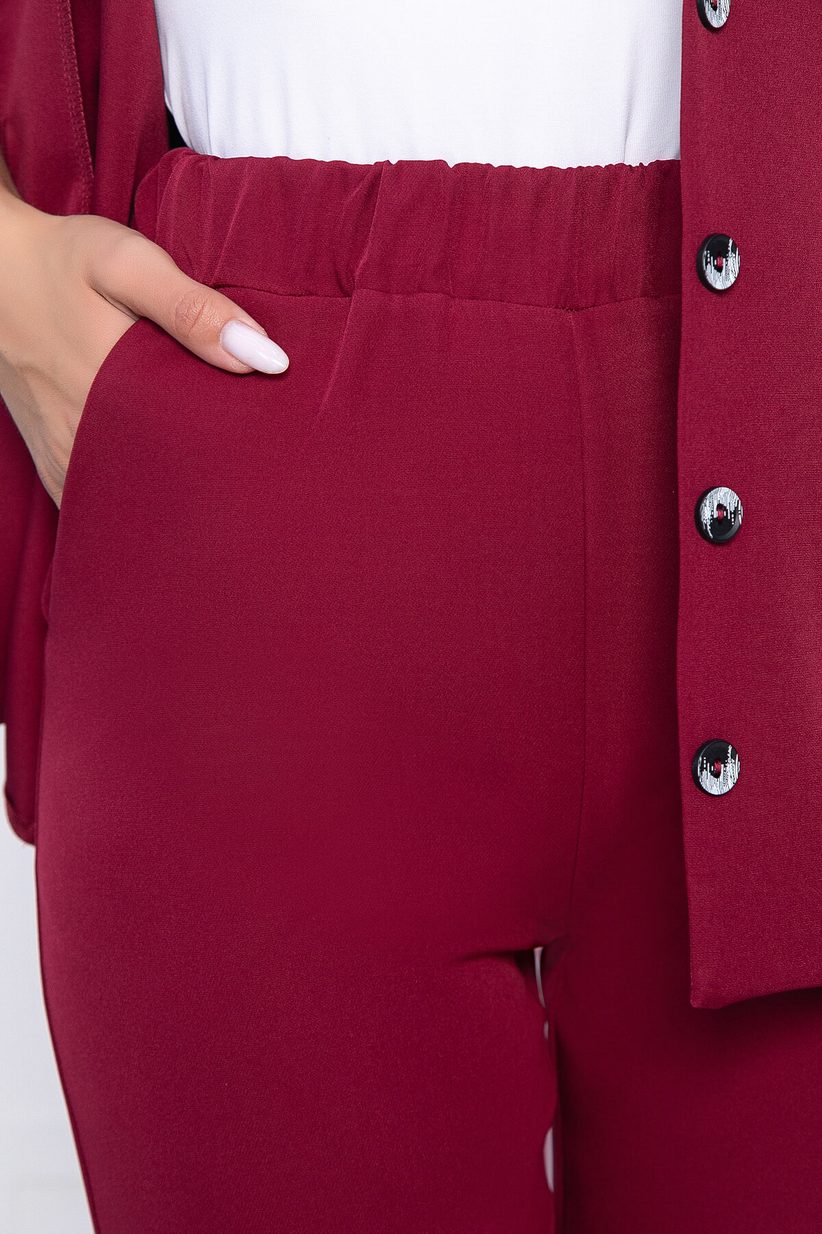 Яркий брючный костюм - один из лучших вариантов разнообразить гардероб! В нём вы будете себя чувствовать уверенно и комфортно. Можно носить как совместно, так и раздельно. Этот брючный костюм подойдет для работы в офисе, деловых встреч и мероприятий. Жакет свободного кроя на пуговицах, рукав 3/4, спущенный на манжете, разрезы по боковым швам. Брюки полуприлегающего силуэта на резинке, есть карманы.