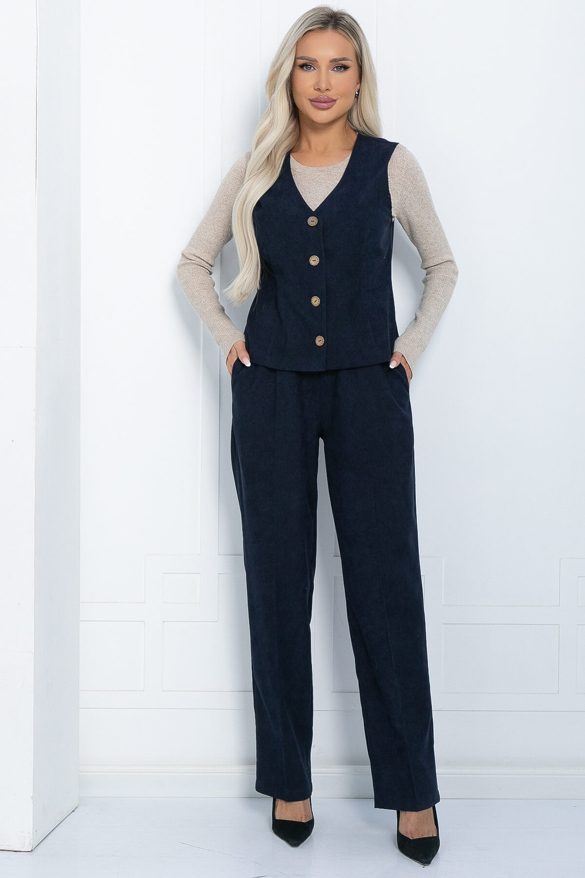 Мягкий и уютный вельветовый костюм — это элегантный акцент вашего гардероба. Этот стильный комплект состоит из брюк и жилета, которые можно сочетать как между собой, так и с другими элементами одежды, создавая разнообразные и уникальные образы.