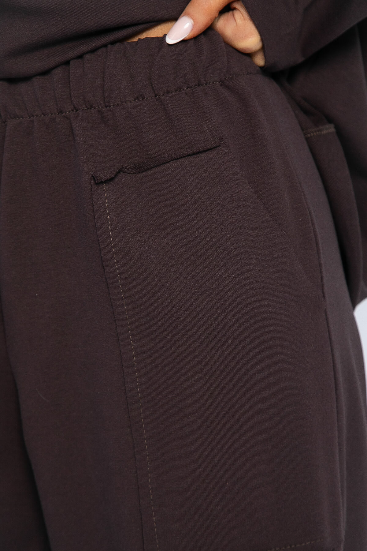 Современный городской стиль в базовом исполнении костюма! Крой oversize, необработанный край и накладные карманы выделяют костюм из десятка похожих! Обратите внимание на натуральный состав! Ткань хлопок 95%, комфортная и приятная в любой сезон и погоду. Костюм можно разделить на верх и низ и сочетать с любыми другими изделиями из вашего гардероба! Мы выбрали самый трендовый цвет этого года — шоколад! Еще одно преимущество этого костюма, что подойдет для девушек абсолютно любого роста! Просто подверните рукав или низ брюк!