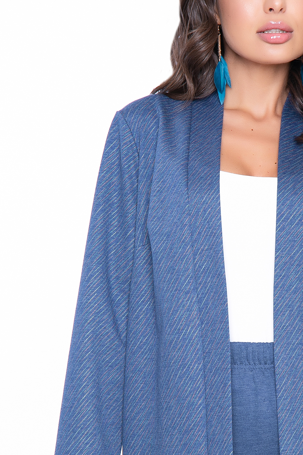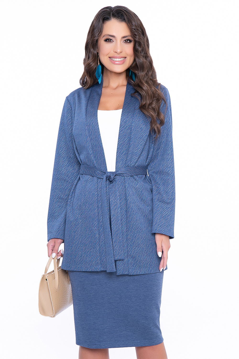 - Жакет с притачной планкой по переду, в комплекте поясок в тон;