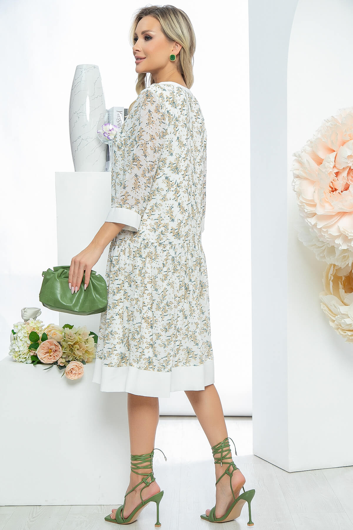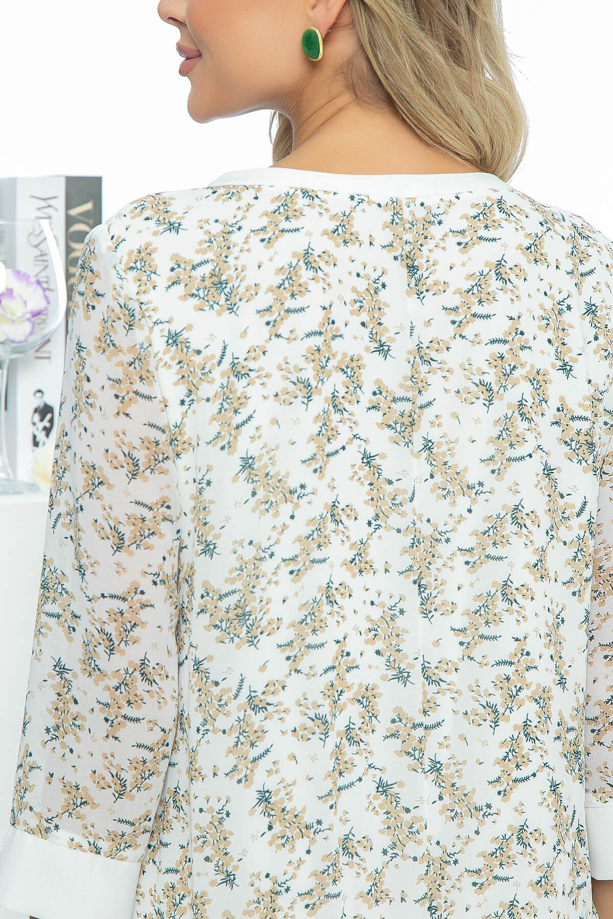 Летящее платье из шифона с цветочным принтом - идеальный вариант для создания женственного образа для любого случая. Платье свободного кроя, нижняя часть - отрезная. Рукав втачной, три четверти, оформлен манжетом. Вырез горловины - округлый. Платье на подкладке.