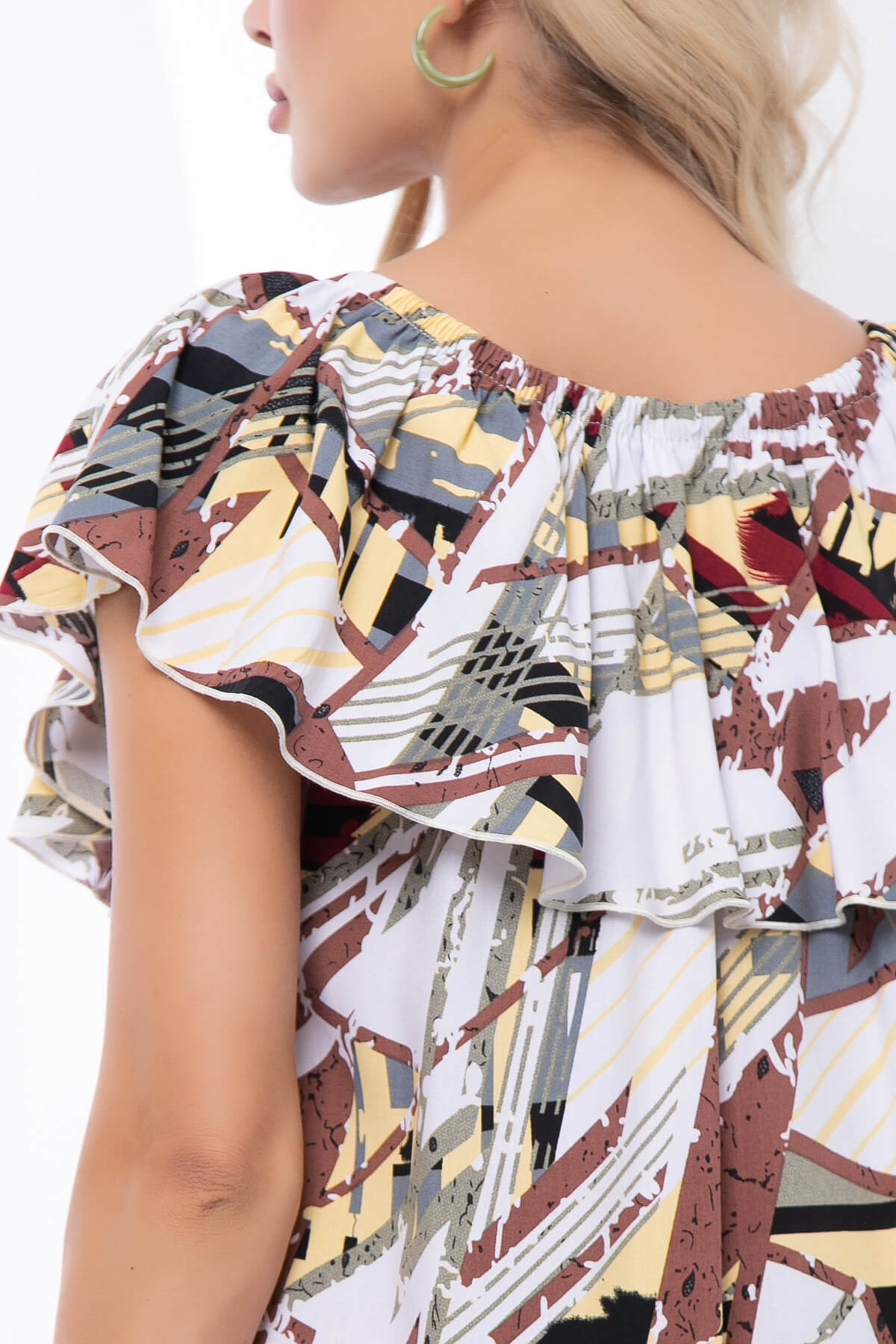 Платье свободного кроя изумительно смотрится как с каблучком, так и с кедами! Юбка с воланом по низу добавляет романтичности и воздушности образу. Изделие украшает акцентный рукав и вырез, позволяющий открыть одну из самых женственных частей тела - плечи и ключицу.