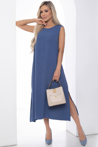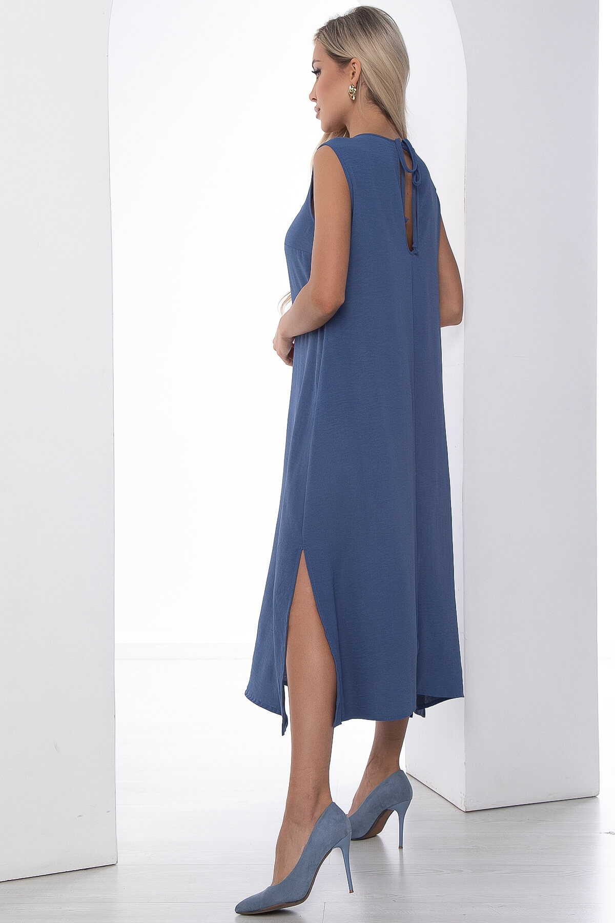 Сарафан из струящейся ткани красивого синиго цвета - идеальный вариант для летних прогулок. Сарафан свободного A-силуэта, без рукавов, вырез круглый регулируется по спинке завязочками. Спинку украшает вырез-капелька. Изделие без замков и подкладки.