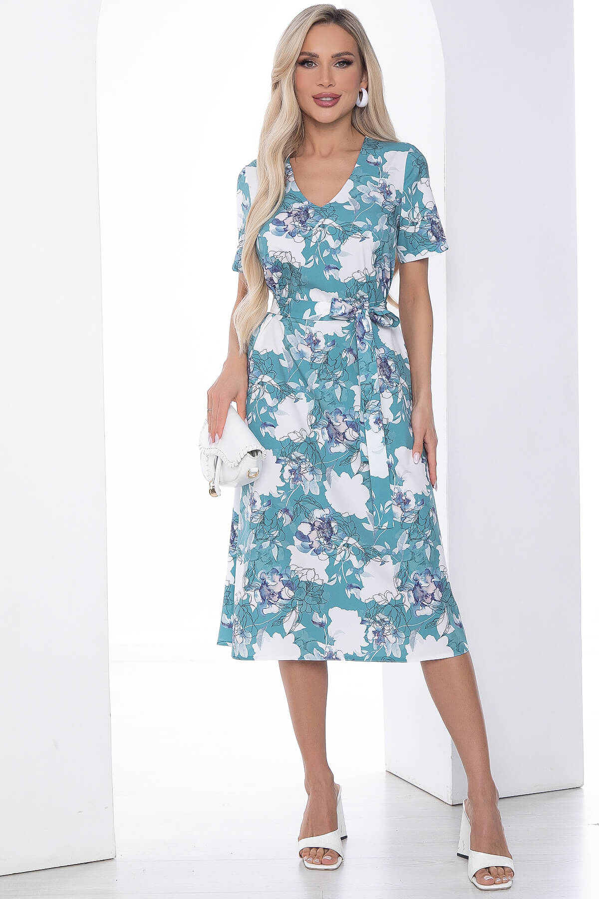 Невероятно нежное платье из легкой ткани отлично подойдет на каждый день. За счет своего принта, изделие отлично смотрится даже без украшений. Преимущества фигуры подчеркнет пояс из основной ткани, который идет в комплекте.