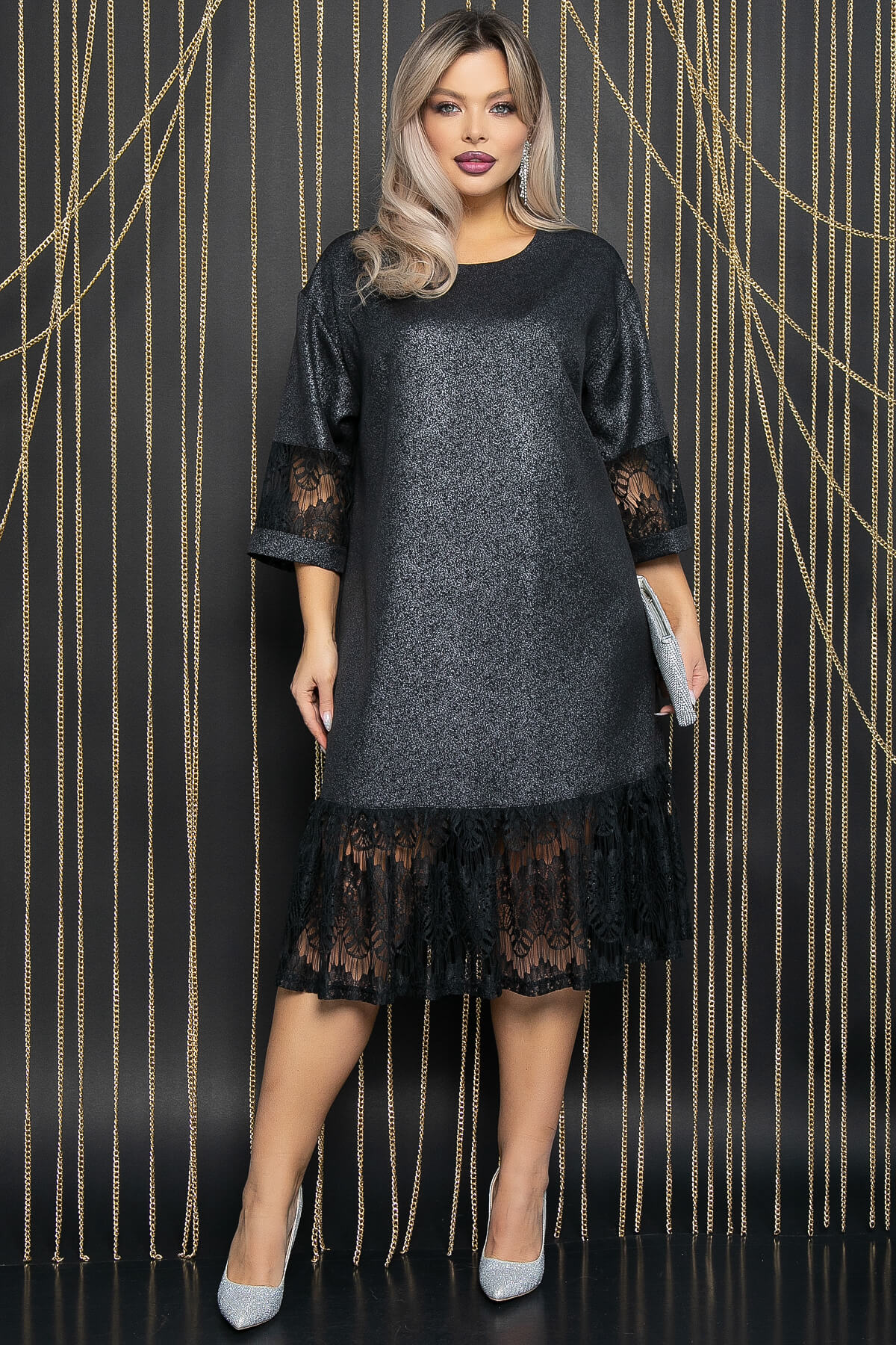 Позвольте себе ощутить невероятную легкость с нашим потрясающим платьем свободного кроя! Этот наряд, созданный для максимального комфорта и свободы движений, станет вашим постоянным спутником, позволяя всегда выглядеть уверенно и стильно. Особой изюминкой этого платья является нежная кружевная отделка по рукаву и снизу платья, придающая ему романтический и утонченный вид. А благодаря округлой горловине и рюшам по низу изделия, платье приобретает игривый и женственный образ.