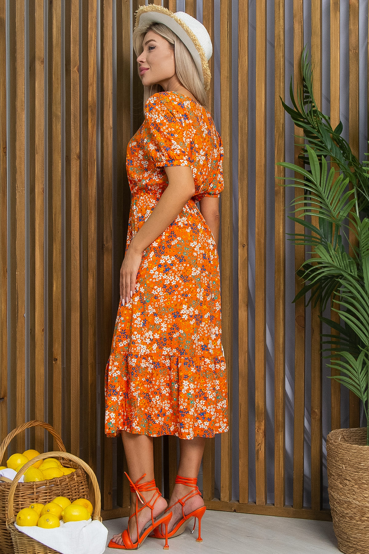 Летнее платье, которое подчеркнёт вашу женственность и подарит ощущение комфорта. Платье с квадратным вырезом горловины и рукавами-фонариками на резинке создают романтичный и игривый образ. Яркий принт и волан по краю юбки добавят модели свежести и игривости. По талии на резинке. Идеально подходит для тёплых дней. Сочетайте его с любимой обувью и аксессуарами, чтобы создавать стильные и привлекательные образы как для повседневной носки, так и для особых случаев.
